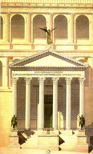 Здание храма начал строить в честь отца Тит, но заканчивал строительство его брат Домициан.