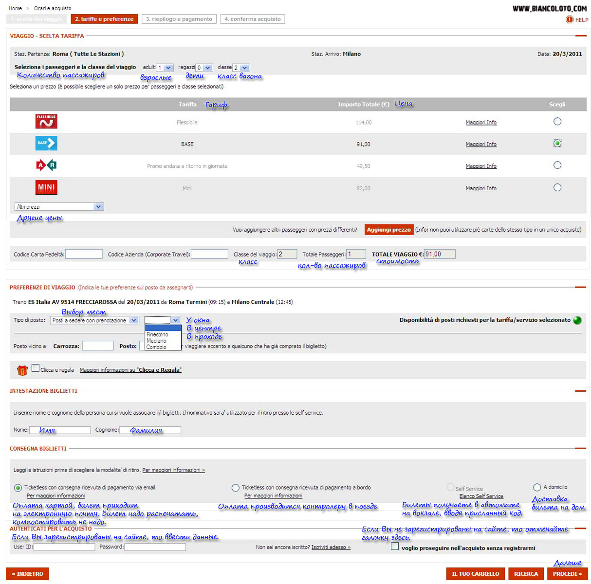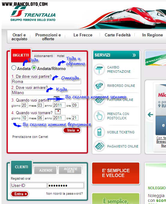 Как заказать на сайте www.trenitalia.it