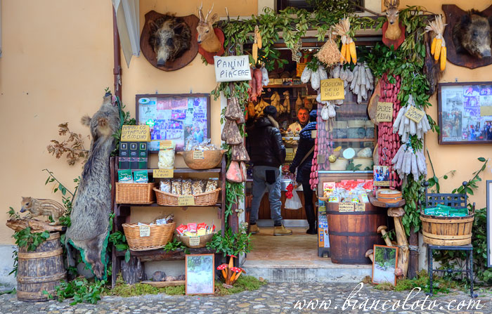 Горный город, известный производством мясных деликатесов, а также тем, что является родиной святого Бенедикта.