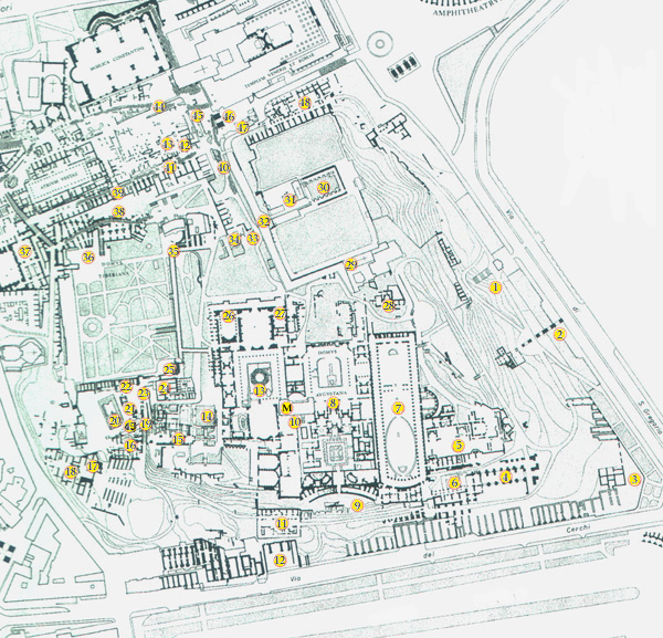 Находятся между термами Севера и Домус Августа (Domus Augustana).