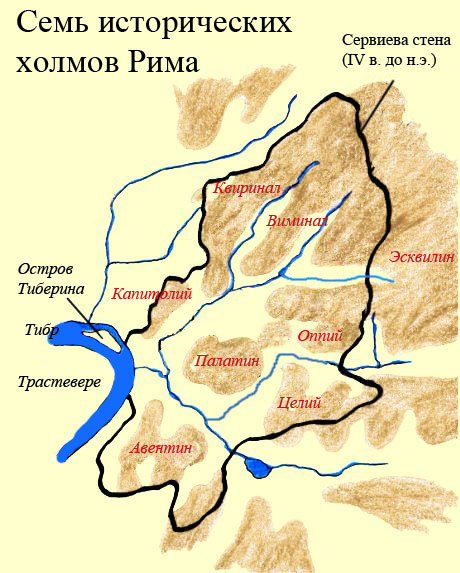 «Город на семи холмах» - так называют Рим, потому что он был построен на семи возвышенностях, ставших легендарными.