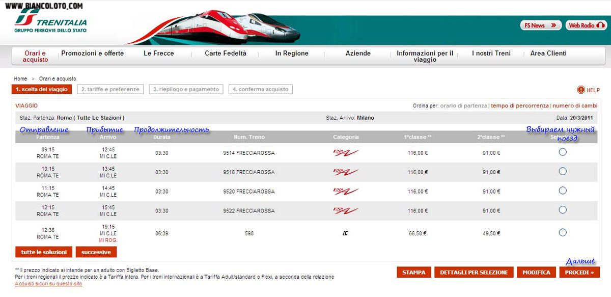 Как заказать на сайте www.trenitalia.it